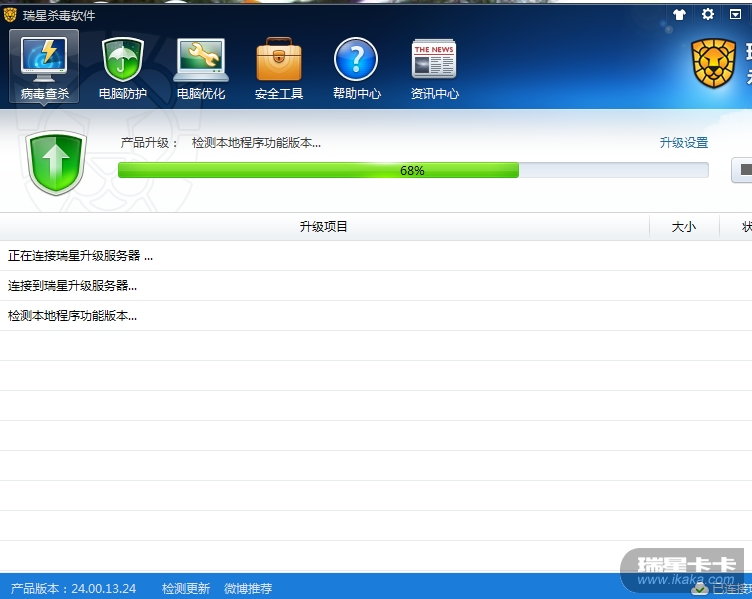 你可以试试通过右键瑞星托盘的绿伞图标选择软件升级