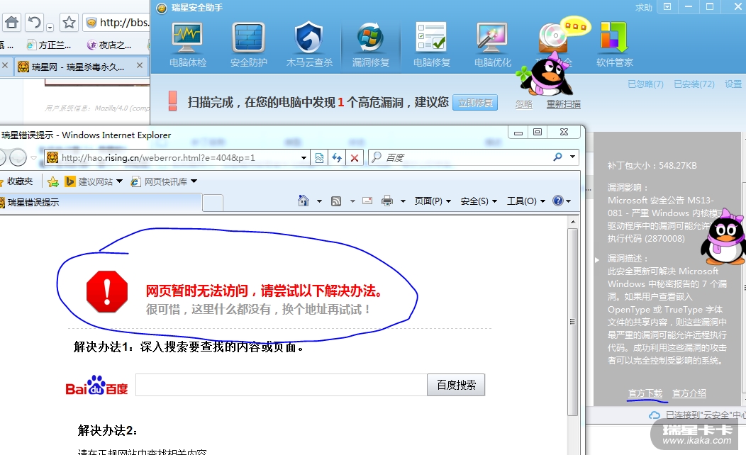 360卫士、新毒霸破坏瑞星杀毒导致升级失败(升级提示XXXXXXX 800006)的解决办法