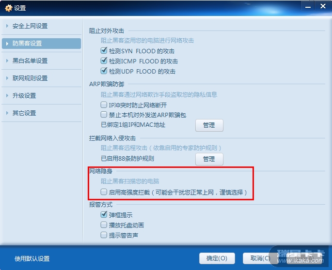 请楼主查看防火墙设置中,启用高强度拦截这个勾选了吗?如下图: