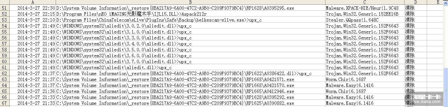 最近2天中了更多毒了,还中了 Malware.Kazy!.1416      Stealer.QQpass!1.648C