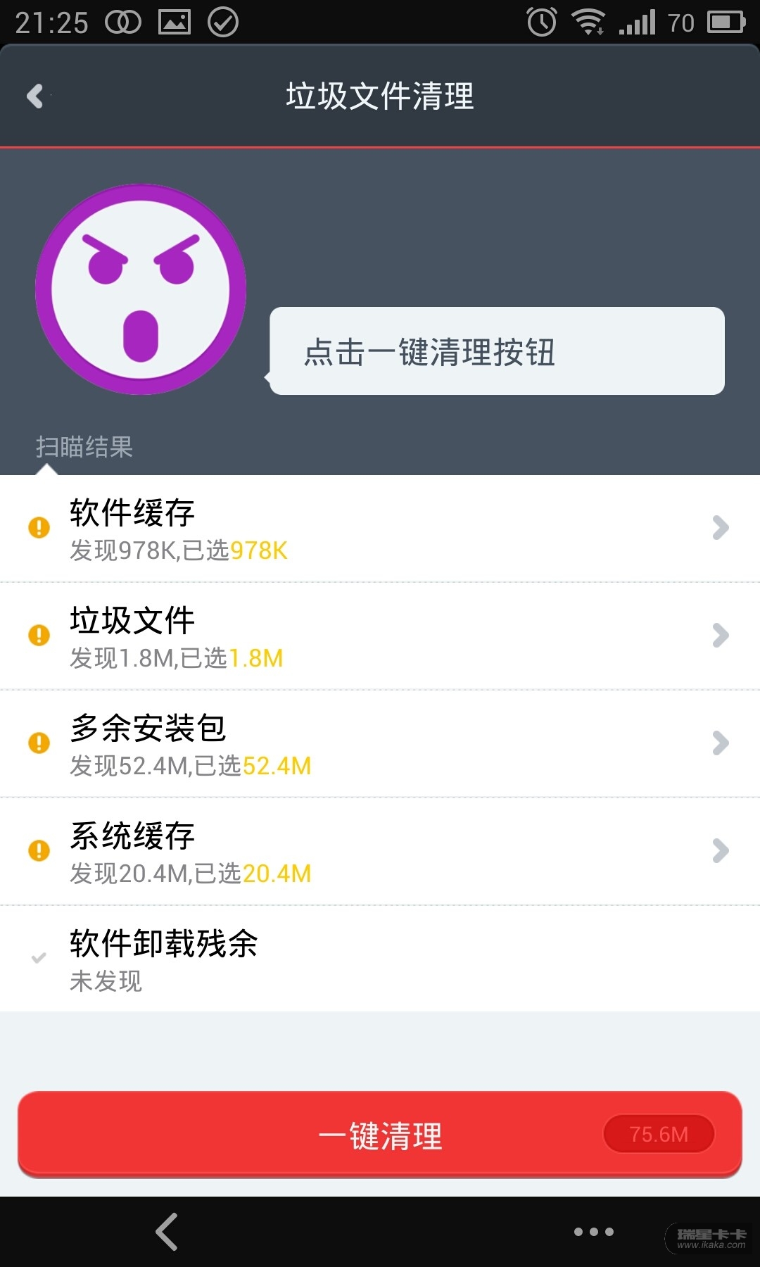 1.垃圾文件清理和打开瑞星手机软件的结果不同: