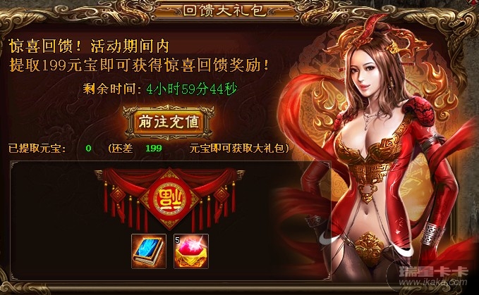 活动内容:只需要充值提取199元宝就能获取珍贵的回馈奖励