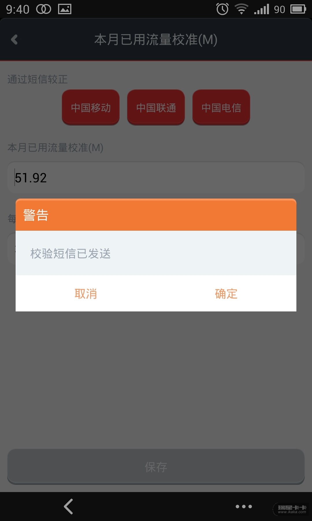 2.校验信息就不能过几秒自动消失吗?非要让人点确定或者取消干嘛?而且黄色边框上居然是警告两个大字,提示信息还是警告!!!!~收到的短信校验不能自动纠正已用流量和每月流量限额,多么实用的功能,你居然都不优化,你TM是在逗我么?
