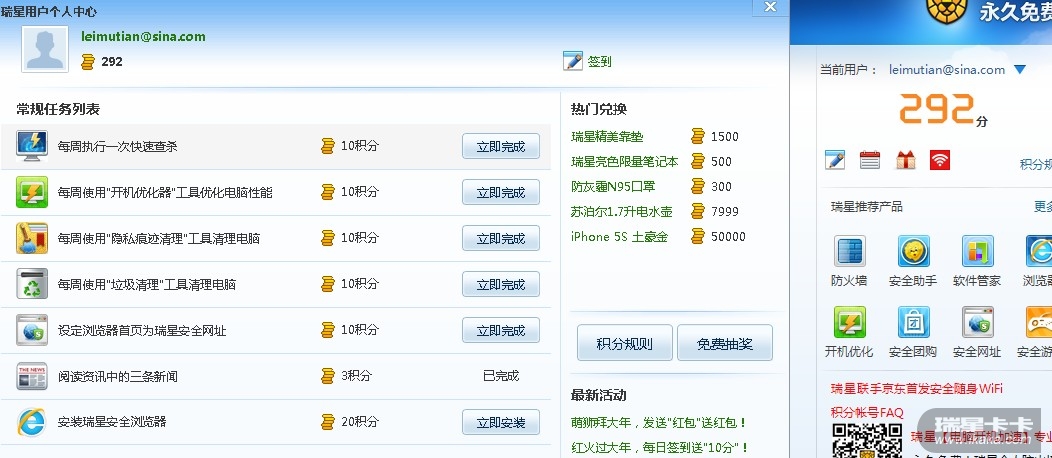 BUG2:瑞星V16+主界面的“关注每日任务保持系统安全”按钮,有时候打开会全部出现立即完成。(偶尔出现这情况)