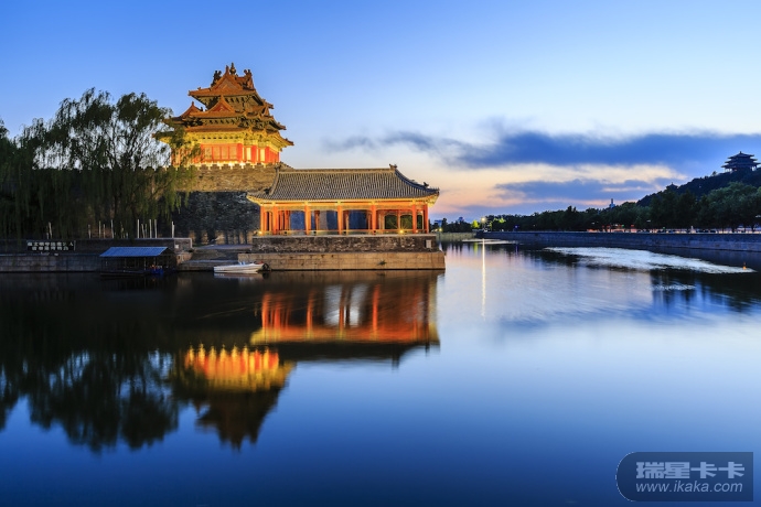 地点:北京故宫护城河外东、西北角两处;时间:分别是晨起和晚上。
