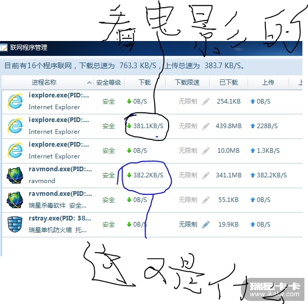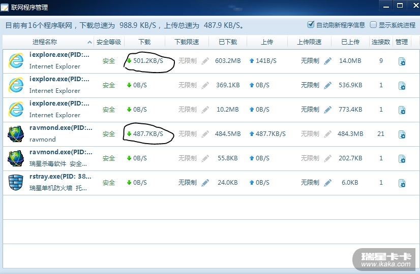 统计时均应该将瑞星ravmond.exe的速度和流量记为0,以免用户造成误解