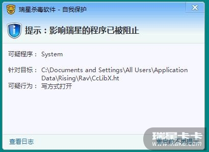 描述:提示:影响瑞星的程序已被阻止