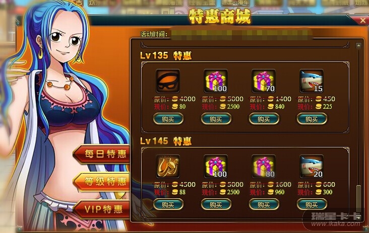 2.特惠商城分为:每日特惠、等级特惠、VIP特惠;