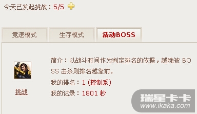 、活动BOSS周期为1周,奖励将额外发放。(若您同时参与竞速、生存、活动则可获得3份排名奖励)