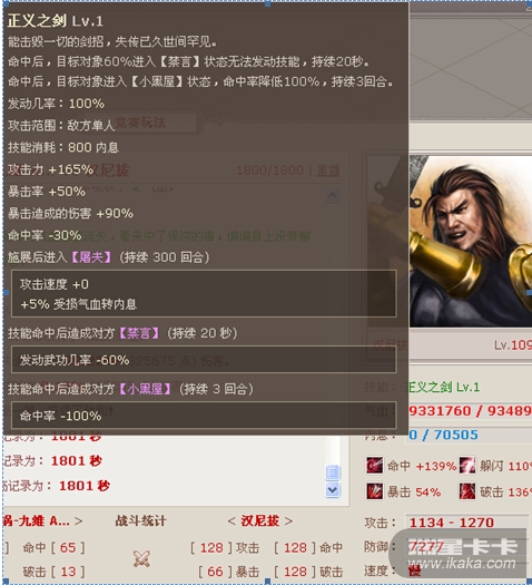 辅助技能3:【屠夫】:内息每降低1% 增加7点攻击速度,5%受损气血转内息,持续300回合。
