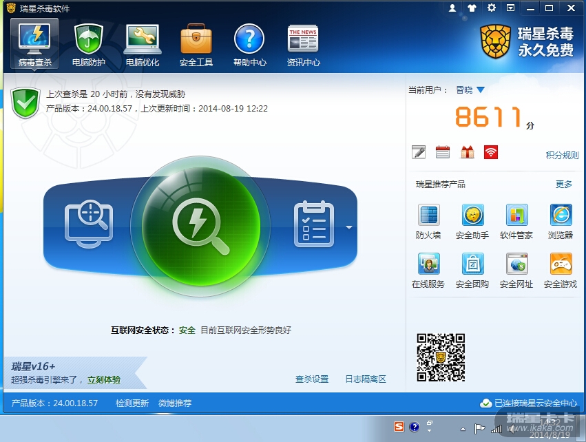 例行快速查杀时,看到瑞星杀毒界面。(如图所示)