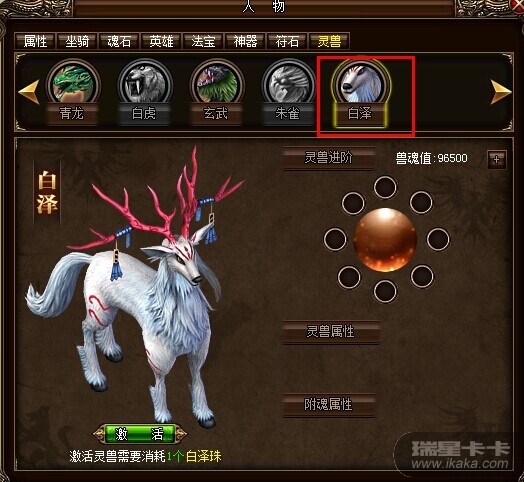 5、新增灵兽白泽,角色到达4转50级并且消耗道具白泽珠可以激活,道具可以通过商城购买。