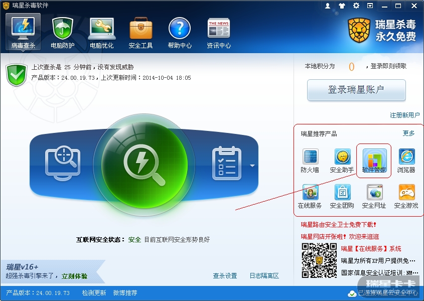瑞星杀毒V16+主界面,界面文字的一处BUG,忘修改!