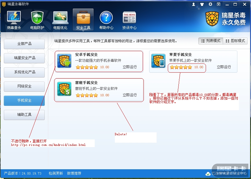 3.还有那个评分,所有的产品都是10.00分,都是满星。。那还不如将评分去掉。。改成描述文字。