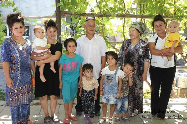 乌兹别克族家庭全家福,新疆伊犁。