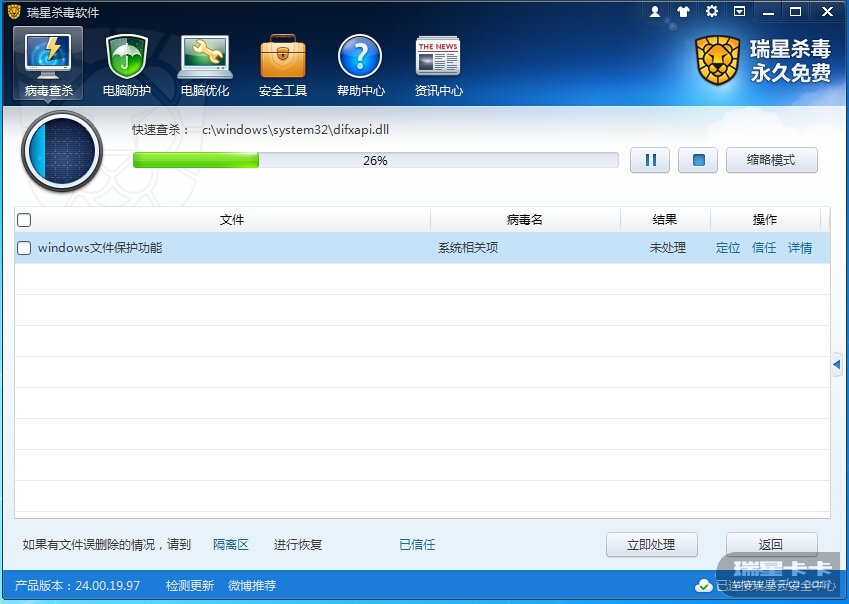 例行快速查杀时,有误报的现象发生。(如图所示)