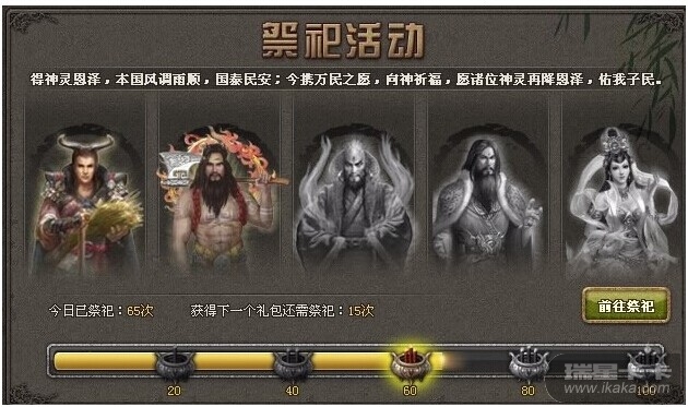 l 祭祀到一定次数(含免费次数)即可获得宝石奖励。