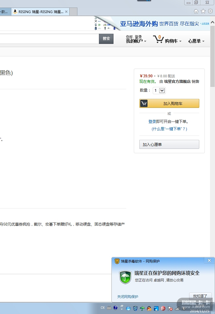 登陆亚马逊官网时,网购保护提示界面中显示不符。