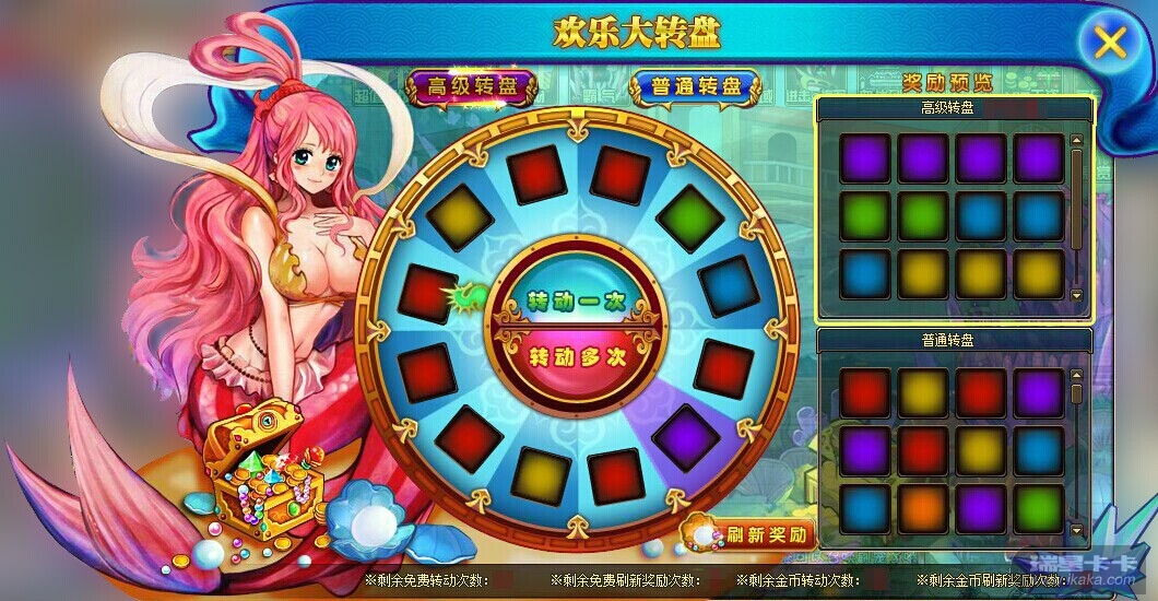 活动名称: 欢乐大转盘活动时间: 长期有效活动范围: 全部服务器活动规则:1. 玩家角色等级≥70级可参加该活动,未符合等级条件的玩家将无法开启活动入口;2. 活动期间,每天登陆可以获得3次免费转动次数和3次免费刷新次数;3. 高级转盘需要花费20金币/次,普通转盘需要花费15金币/次;4. 免费次数不可累积;优先使用免费次数;5. 金币转动次数限制每日凌晨4点重置;6. 玩家从高级转盘中有机会获得稀有物品,从普通转盘可以获得较多材料;7. 高级转盘和普通转盘共享转动次数和刷新次数;8. 转盘奖励可通过“刷新奖励”功能进行随机奖励重置,10金币/次。每日幸运次数标准:VIP等级