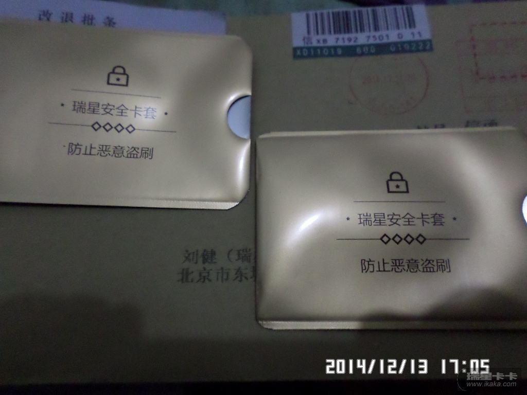 2014.11.12.投票APEC蓝【要】,2014.12.13.收到的礼品:瑞星安全卡套2个。