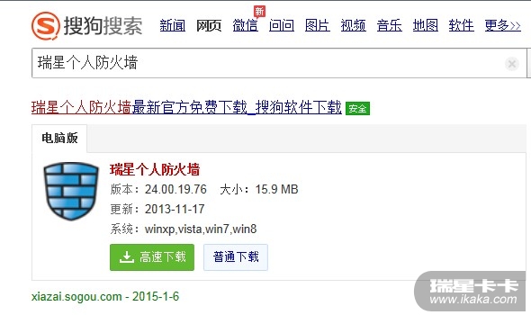 在搜狗搜索里输入“瑞星个人防火墙”时,发现版本很低,建议相关工作人员更新一下。谢谢!(如图所示)
