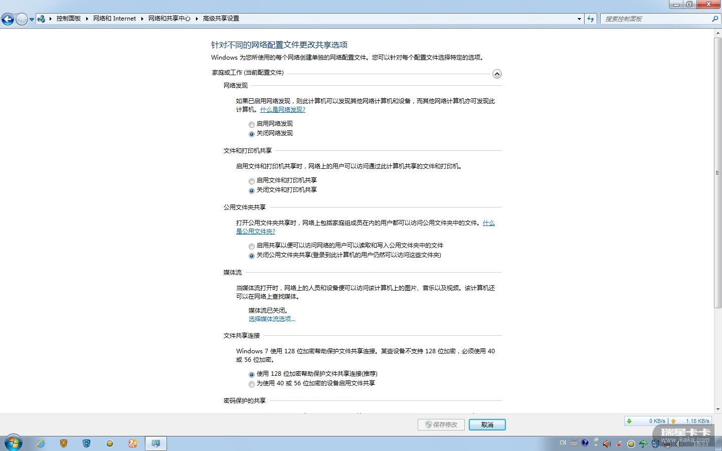 找到两个 值都为零 不改了 反正没文件共享 也没打印那些设备 更改高级共享那也关了