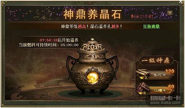温养燃料:分为“梨花木”和“乌檀木”。神鼎每升一级,免费赠送100个梨花木。玩家也可使用金币直接XXX;