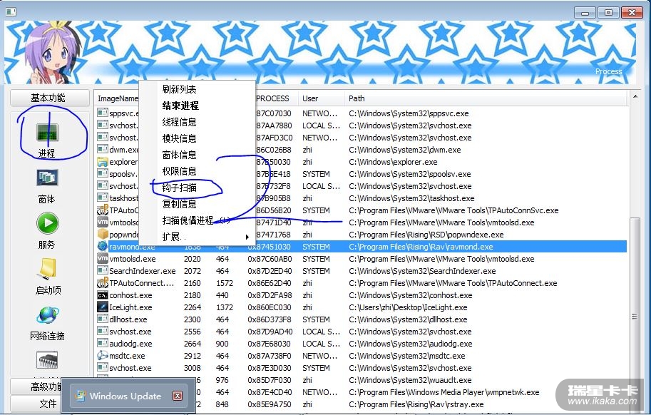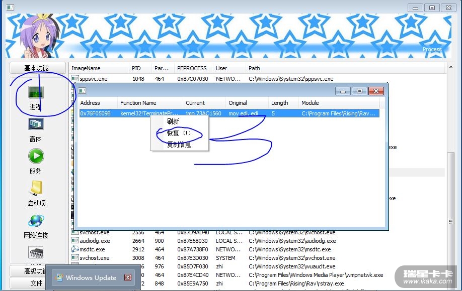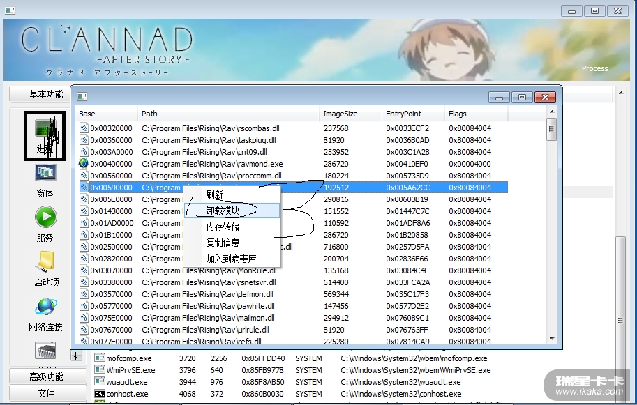 a、操作瑞星进程