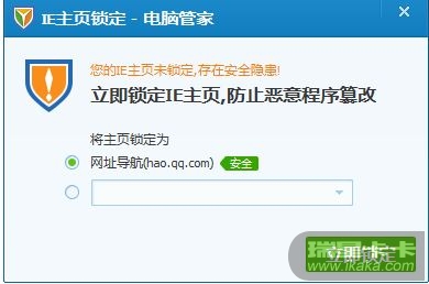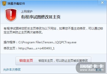 3、管家 修改主页,导致瑞星弹窗,我多次点击锁定主页,但是 打开IE ,还是提示主页被修改