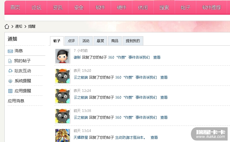 看见了吧 ,在卡饭 无论是谁回复了我的帖子,系统都会通知,而卡卡论坛工程师回复了,必须QQ留言通知,否则用户很有可能不知道信息呢?