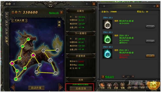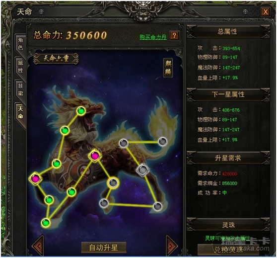 每星点亮需要一定的命力,命力通过玩家使用命力丹获得,每日使用命力丹的次数有限制;