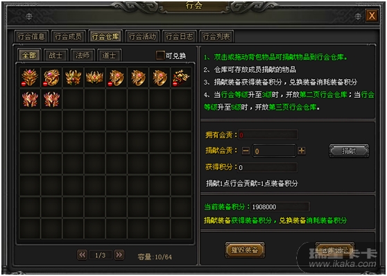 修改后的行会仓库只能捐献装备