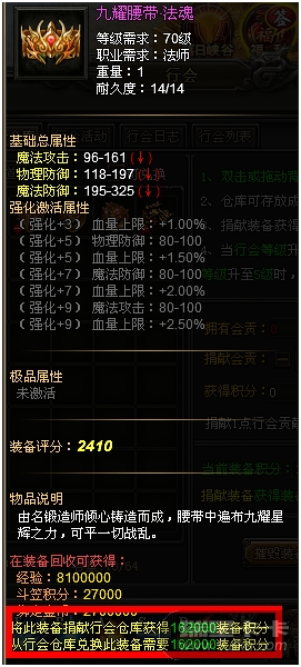 玩家可以通过行会贡献兑换装备积分,