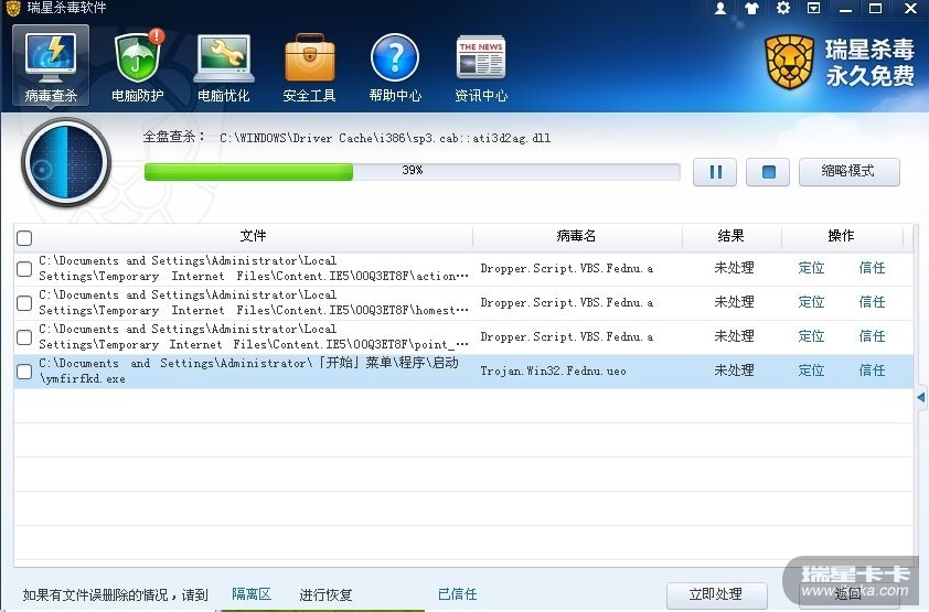 2、处理失败,那个失败的样本提取不出来,并且瑞星定位时报错!!!