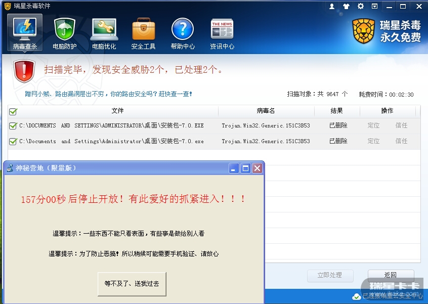 [疑似bug] 记得瑞星以前处理病毒时,先结束进程的,后再杀毒的,为何变了呢?