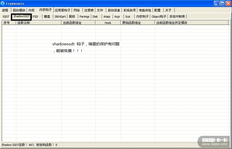 并且 ,若恢复瑞星的内核 inline 后,其在 shadown 的挂钩,也能轻易被恢复!!!
