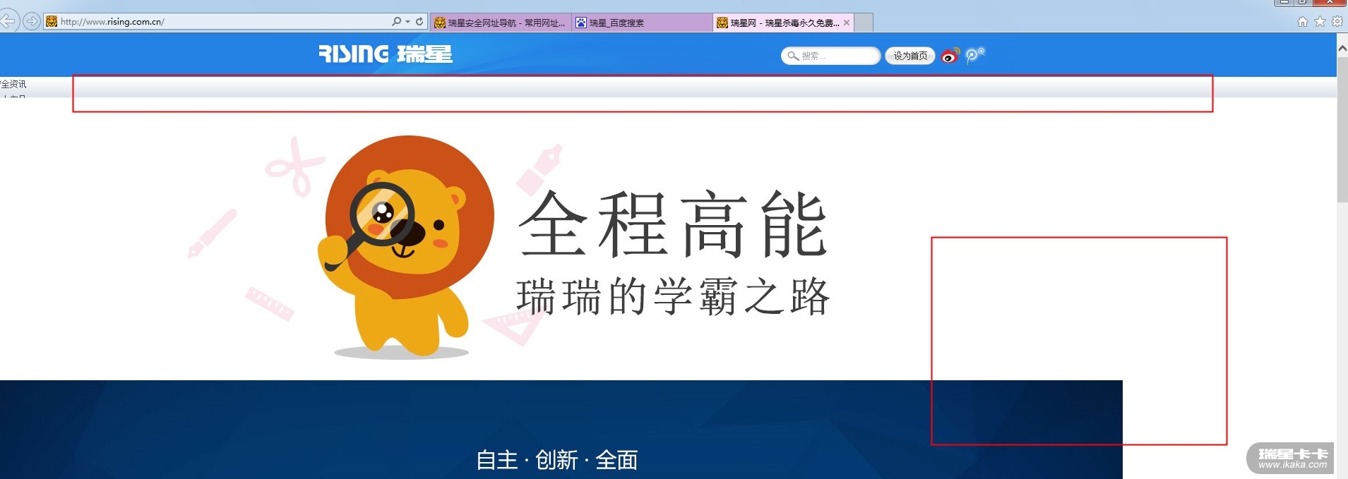 打开瑞星官网时,发现界面布置的很凌乱。该不会是在变大招吧!嘻嘻!(如图所示)