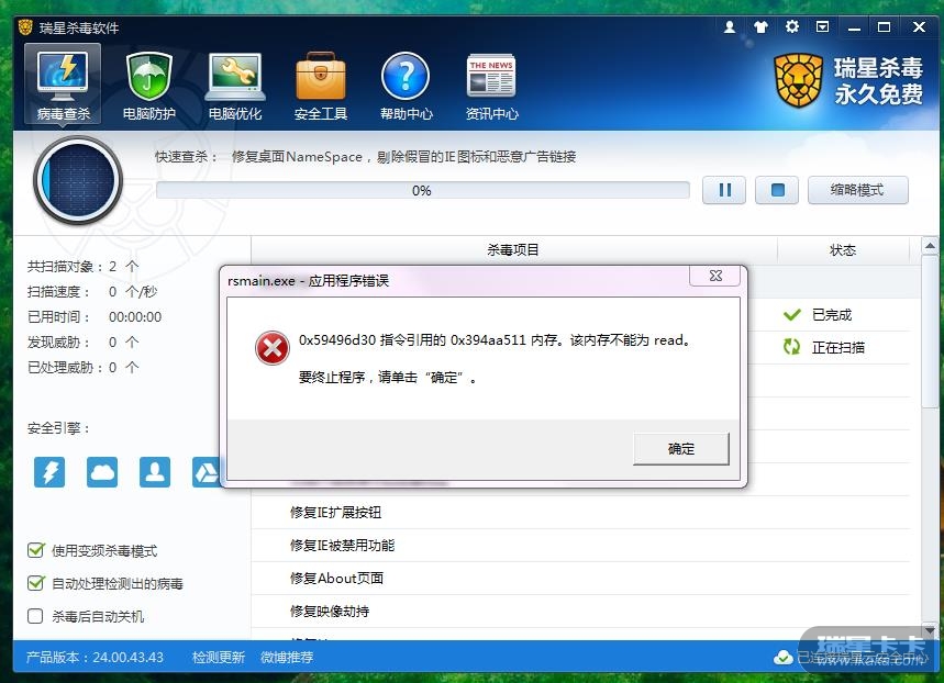 [疑似bug] 怎么这几天瑞星快速杀毒与全盘杀毒时老是这样啊?