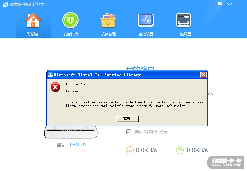 我的瑞星路由安全卫士总是出错,点击确定,就关闭。