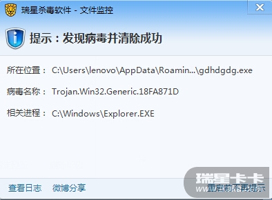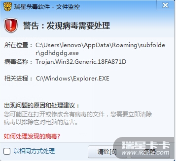 1、瑞星文件监控,一直 报警,并提示清除成功,但是一直不停的发现同一个病毒文件