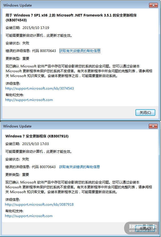 安装windows更新时,尤其是.NET framework更新,常常会出现WindowsUpdate_80070643错误,经反复尝试发现必须关闭杀毒软件开机启动,并在MSCONFIG中选择加载基本启动项,重启后才能安装成功!