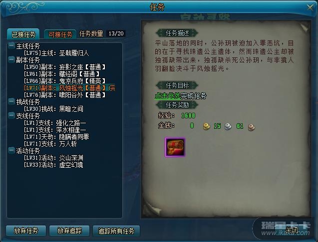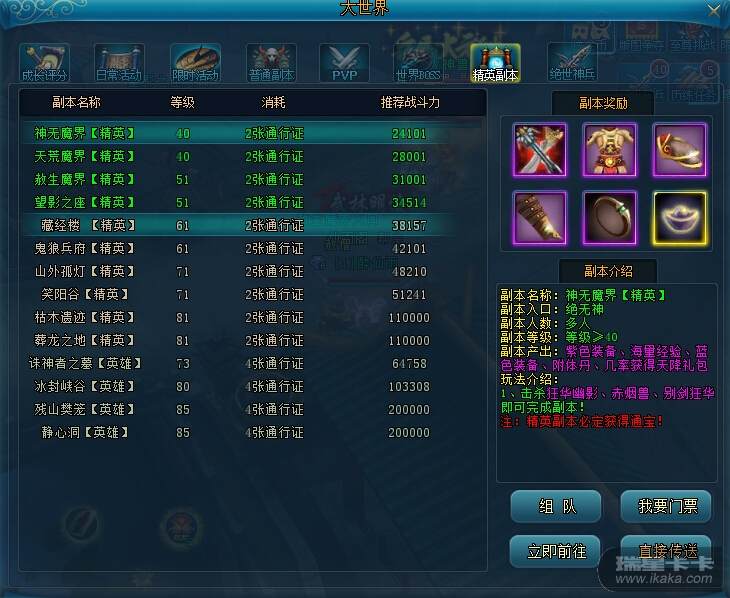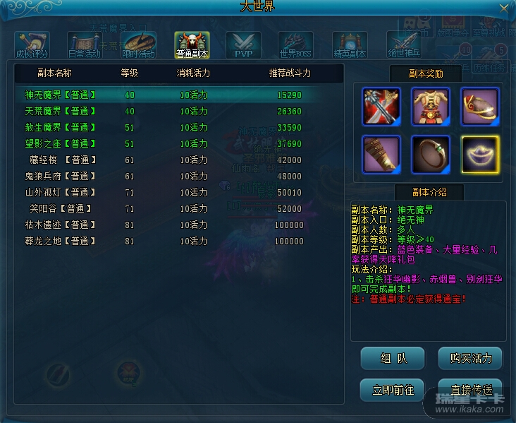 一、普通副本:完成后可获得蓝色装备、经验、通宝和精英副本通行证。