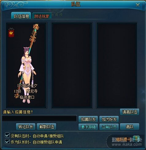 8.  把自动组队和自动申请的对勾去掉就可以不自动加进队伍,玩家可以只加自己需要的玩家进入