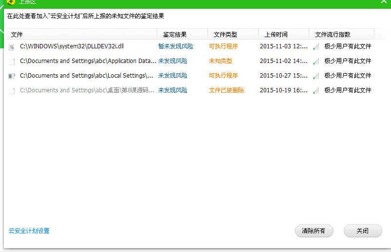 所有未知文件都自动进行鉴定,无条件上传(当然要对用户的隐私保密),这样可以知道有哪些文件被上传,并入库了,包括可疑文件,并显示如图的鉴定结果,希望瑞星公司能仔细参考我的建议,谢谢