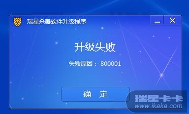 2015年11月11日晚都可以正常升级,今晚开机后打算升级,用瑞星杀毒软件,提示升级失败,失败原因800001,应该是无法连接服务器的意思。