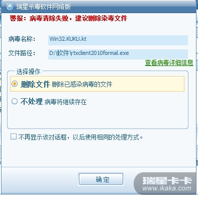 瑞星企业版24.00.08.95版本没法查杀win32.kuku.kt