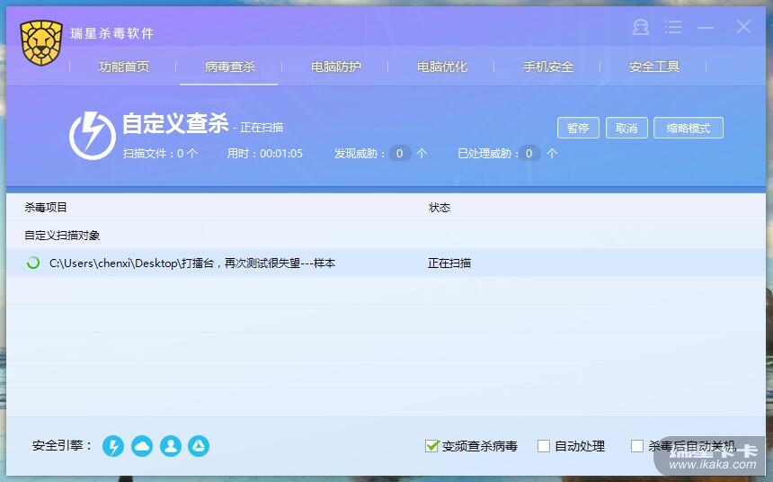 1、引擎 一直不动,文件一个没有扫 主程序扫描