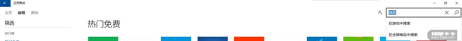 我在WIN10系统中,看到应用里没有瑞星应用程序,建议把瑞星系列加进去。(如图所示)