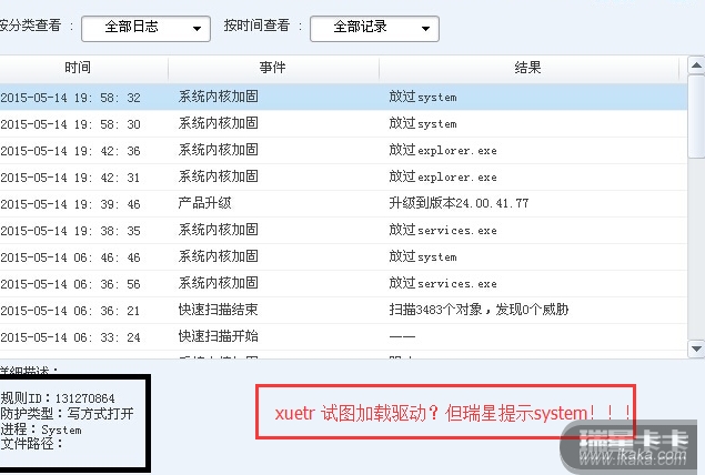 xuetr 加载驱动,瑞星这样 提示用户》??》?  是不是有点误导呢》???? 再说也 说的不清不楚啊, 完全是驴头不对马嘴啊???