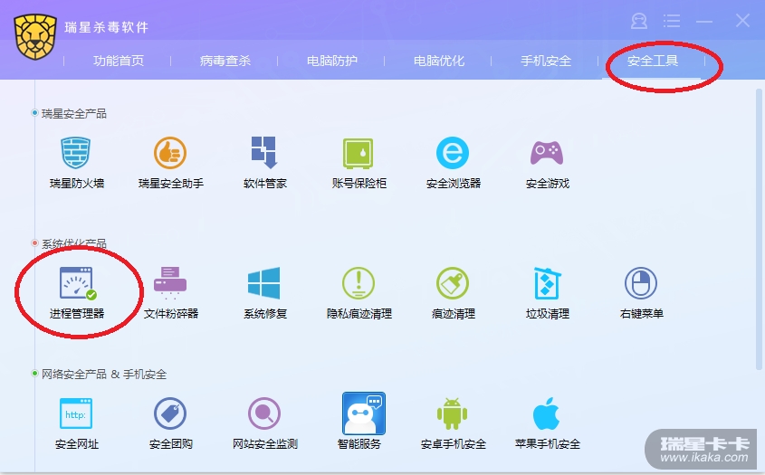 点击安全工具,发现瑞星有19个左右的工具,进程管理器就在其中,由于本人用微软的进程管理器不顺手,觉得好多进程并不很明了,因此抱着试试看的态度用一下。